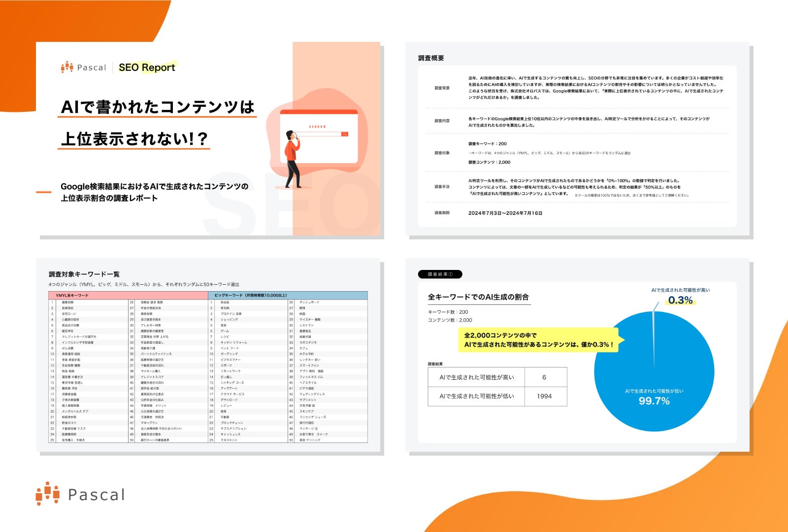 SEOツール「パスカル」の開発・提供を行う株式会社オロパスは、Googleの検索結果における、AIで生成されたSEOコンテンツの上位表示の割合について独自に調査を行いました。