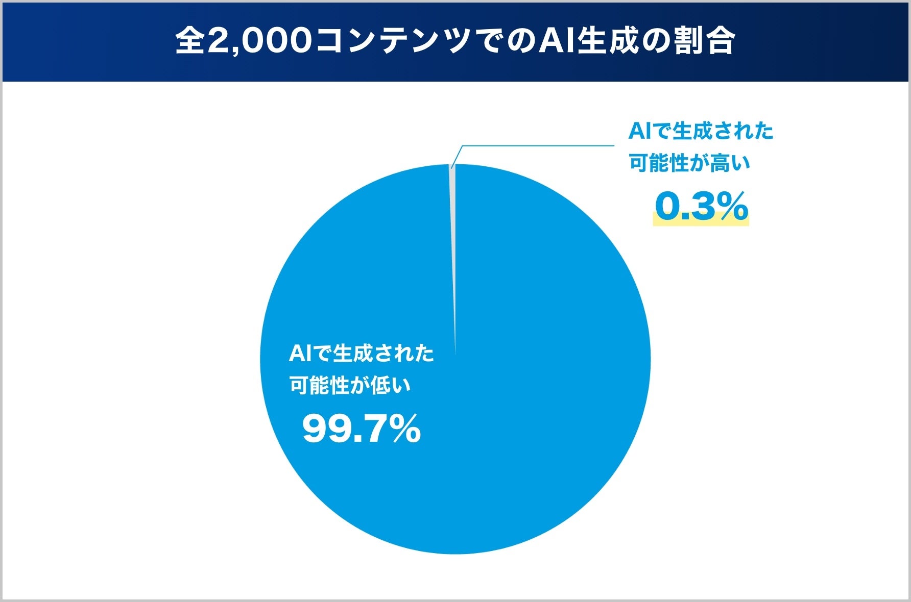 調査の結果、今回調査の対象となった2,000コンテンツの中で、「AIで書かれた可能性が高い」と判定されたコンテンツは、僅か0.3%となりました。