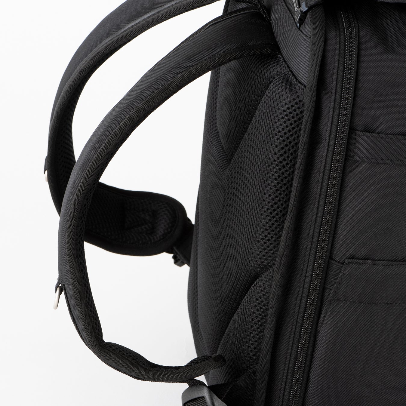 追及したのは大容量なのに軽く、そして背負いやすいこと。マチ幅が変動でき、日によって容量を変えられる機能的な設計です。