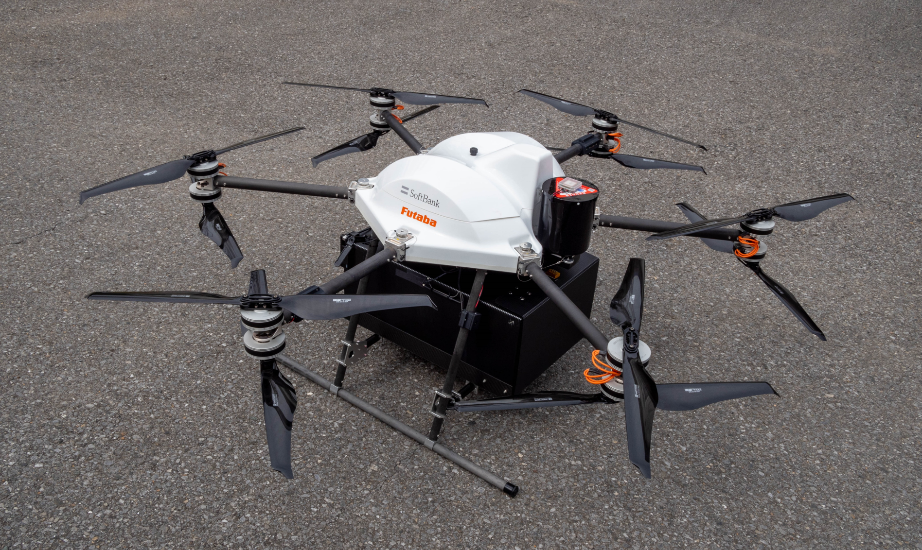 双葉電子工業株式会社の協力の下、ソフトバンク株式会社は、災害時の陸路の寸断などを想定した孤立地域へのドローンによる物資搬送の実証実験を実施。高圧送電線越えを含む最長7km(往復)の距離を目視外で自動飛行し、20kgの荷物を安定して運搬できることを検証。ソフトバンクの高精度測位サービス「ichimill(イチミル)」と連携した他、ドローンの安全装置として、日本化薬株式会社の産業用ドローン向け緊急パラシュートシステムを搭載。