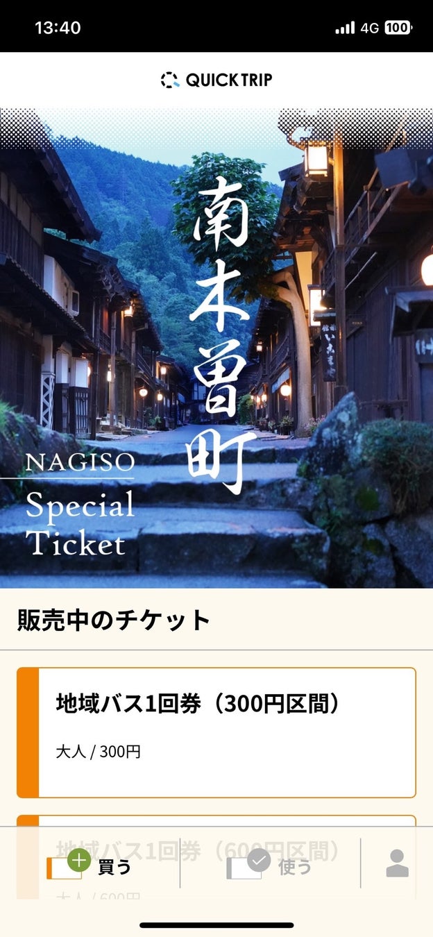 モバイルチケット「南木曽町地域バス乗車券」をQUICK TRIPで販売開始