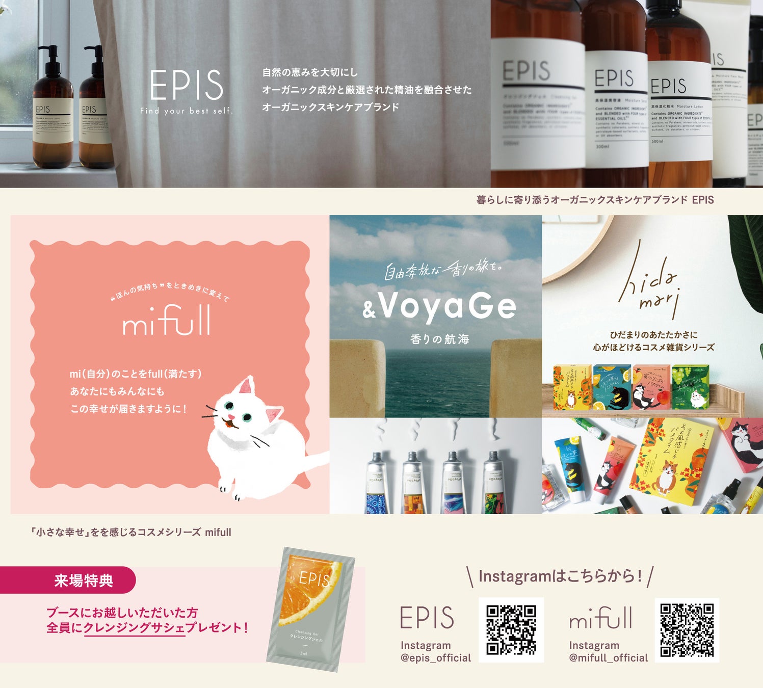 オーガニックスキンケアブランドEPISをはじめ、雑貨コスメmifullを取り扱う株式会社EPIS(本社:岐阜県美濃市 代表取締役:古川慎人)が、2025年1月15日(水)~17日(金)に東京ビッグサイトで開催される「COSME Week 東京 2025」(主催:RX Japan株式会社)に初出展します。 EPISは、「ずっと続けられるオーガニックスキンケア」をコンセプトに、オーガニック成分と無添加処方にこだわりながら、肌に優しい商品を展開しています。展示会では、新作スキンケア商品を中心に、ブランドの魅力を存分にお伝えします。