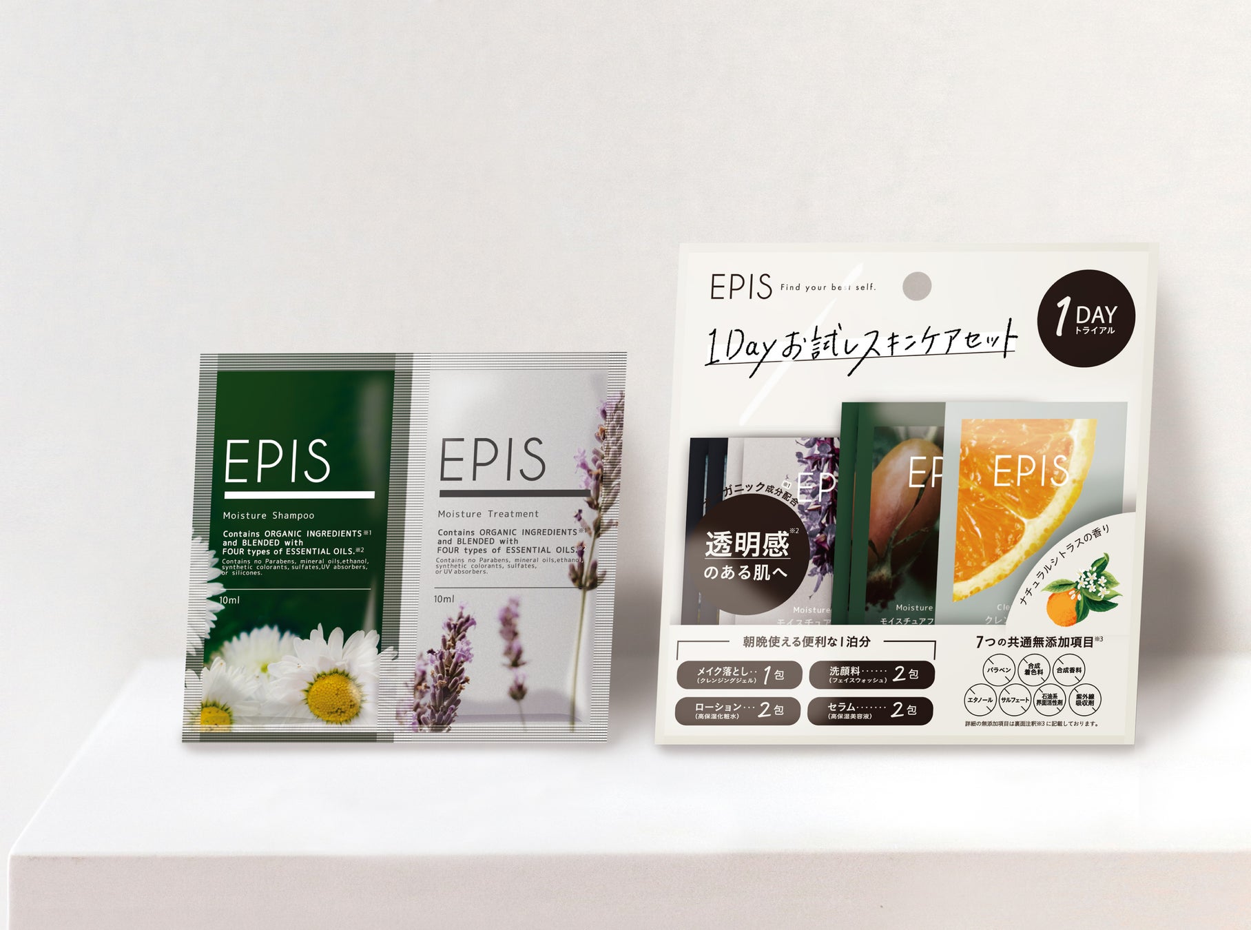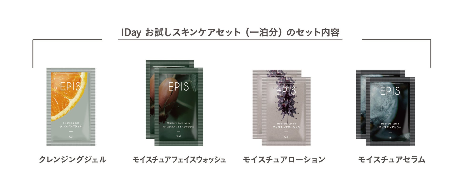 EPISスキンケアシリーズをお試しできるセットが登場しました。 夜と翌朝のスキンケアの分が入っているのでお試しやご旅行にも最適です。