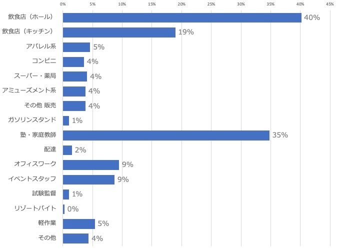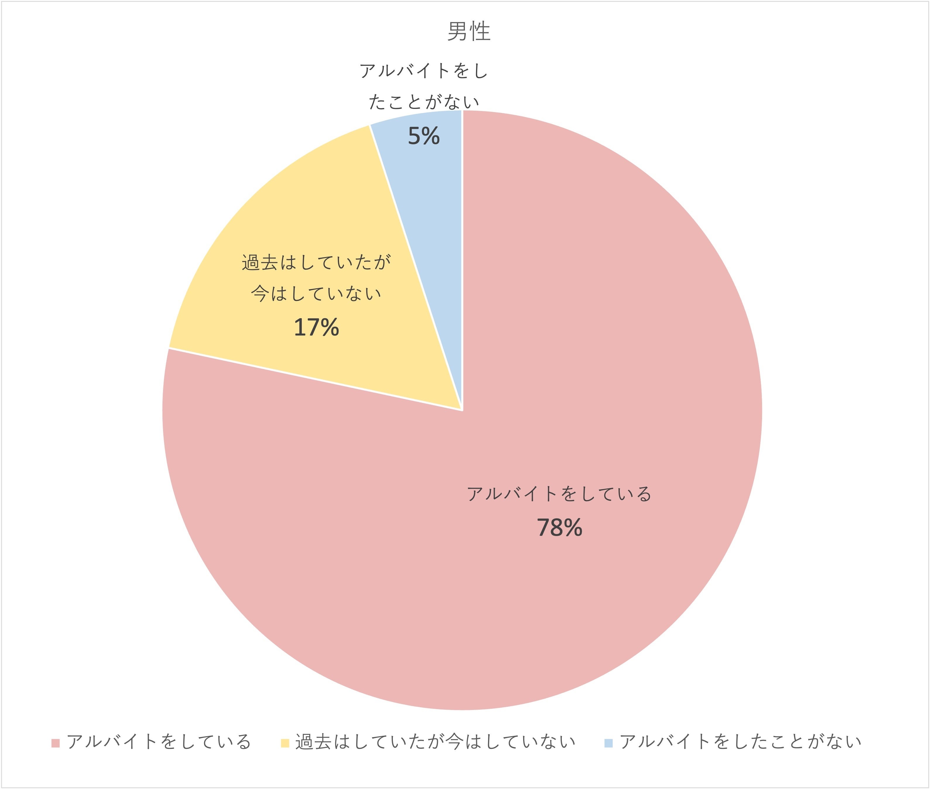 アルバイト経験が全くない人の割合は、男性の方が1%だけ多く見られたが、男女による大きな差はないようだ。