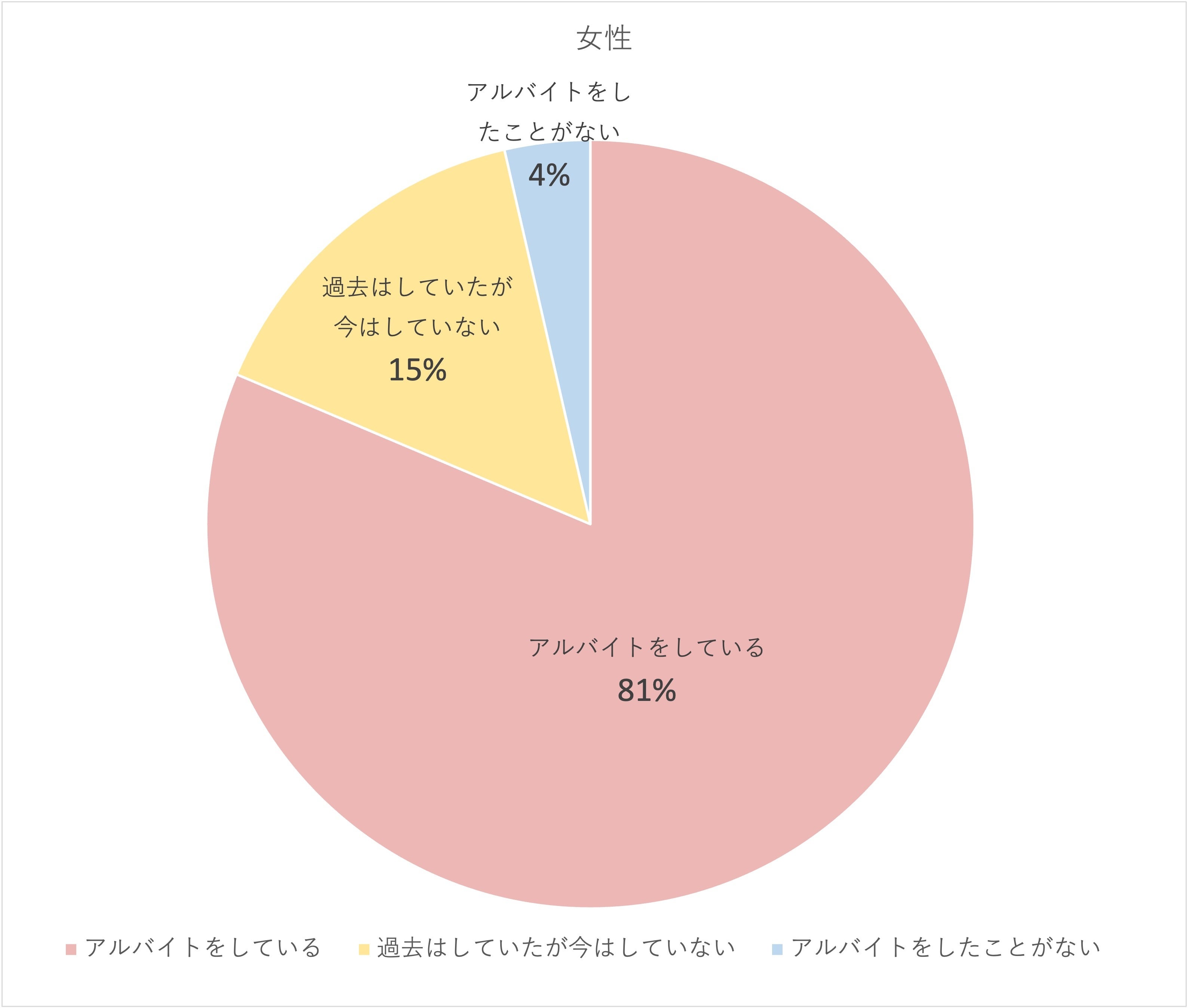 大学生の多くはアルバイト経験があり、一切アルバイトをしたことがない人は全体の4%であった。