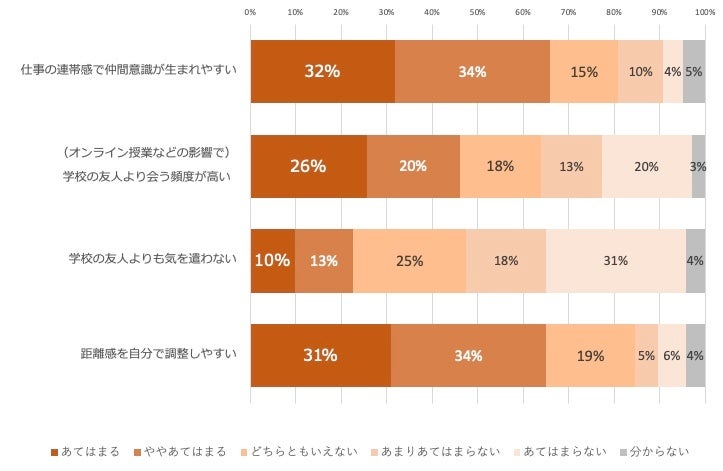 アルバイト先は学校と比べて、仕事を通じた連帯感から仲間意識が生まれやすかったり、距離感を調整しやすかったりすることから、親しい友だちを作りやすいことがわかる。