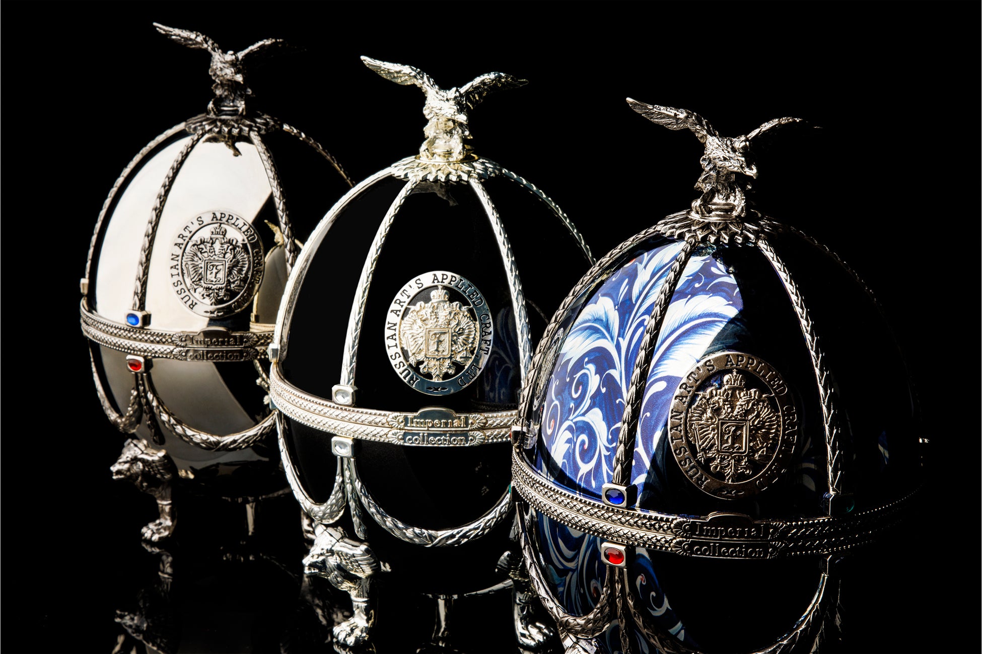 「Imperial Collection Vodka」は、絢爛豪華な装飾を纏ったエッグの中に優美なヴェネツィアングラスに装飾を施したデキャンタと4つのショットグラスが収められています。そのデキャンタに詰められているのは、伝統的製法で精緻に造られたスーパープレミアムウォッカ。クラフトマンシップのすべてを結集させたハンドメイドコレクションです。