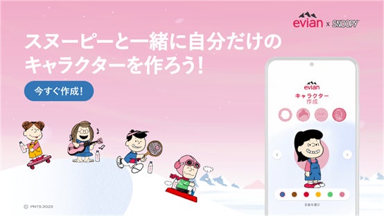 2023年7月1日(土)より、8種類の期間限定オリジナルスヌーピーデザインボトルを発売開始したことを記念し、「スヌーピーと一緒に自分だけのキャラクターを作ろう!キャンペーン」を実施しています。スヌーピーオリジナルデザインボトルに記載されたQRコードをスマートフォンのカメラで読み取って特設サイトにアクセスすると、全500万以上のパターンの中から、ピーナッツのキャラクターたちにそっくりな自分だけのアバターを作成できます。