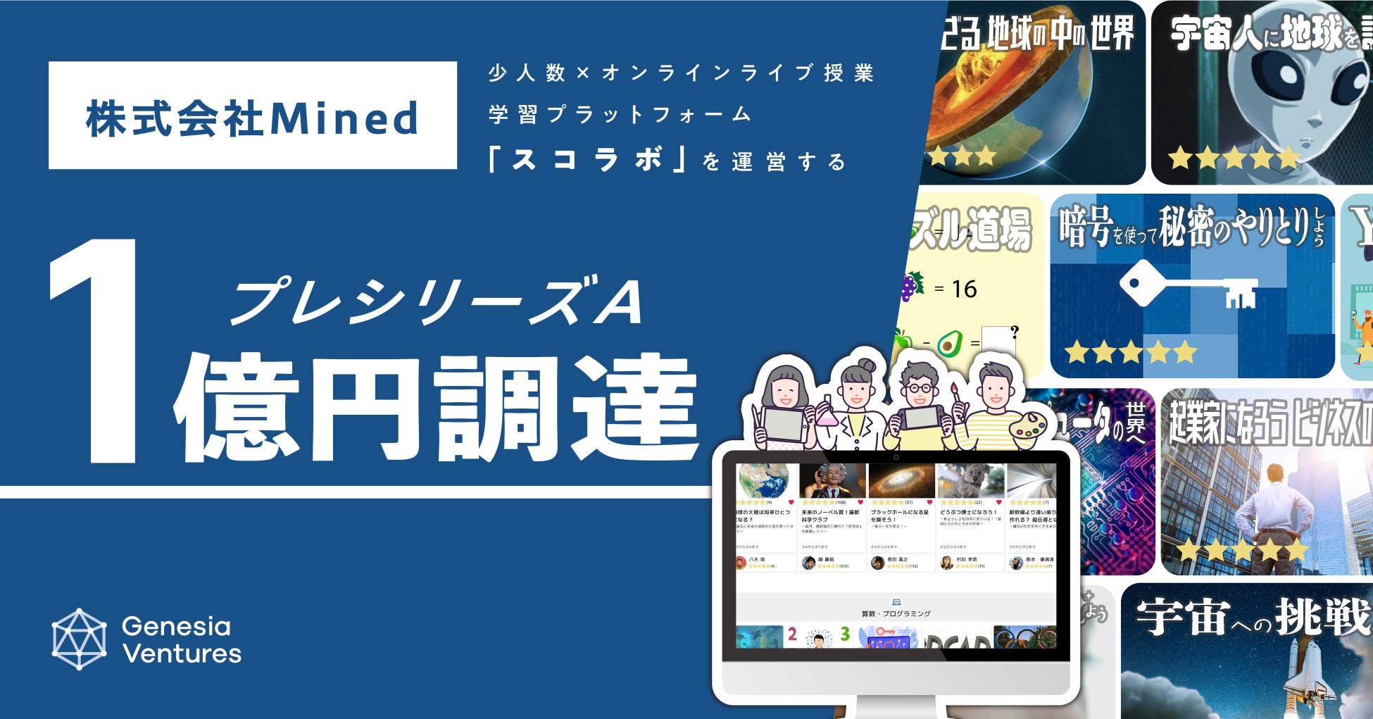 子どもが社会人や大学生など専門領域のロールモデルから直接学べるプラットフォーム「スコラボ」を運営する株式会社Mined(マインド|本社:東京、代表取締役CEO:前田 智大、以下Mined)は、このたびジェネシア・ベンチャーズを引受先とする第三者割当増資により、プレシリーズAラウンドで1億円の資金調達を実施いたしました。