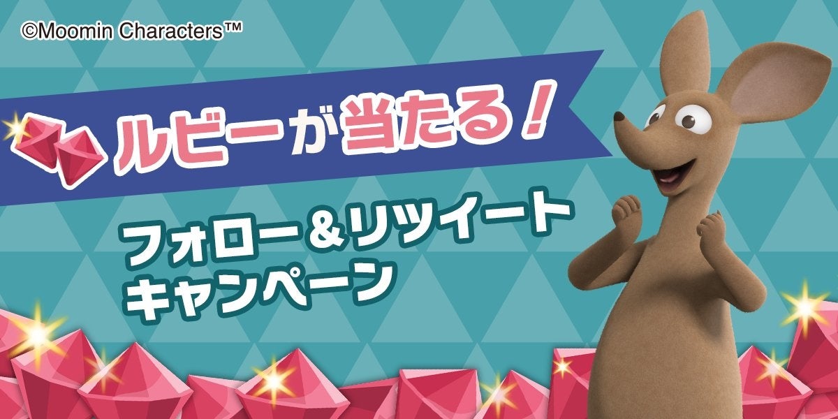 ・詳細:期間中にムーミン谷の探しもの公式Twitterアカウントをフォロー&応募ツイートをリツイートすると、 抽選で20名様にゲーム内で使用できる「ルビー100個」をプレゼント!