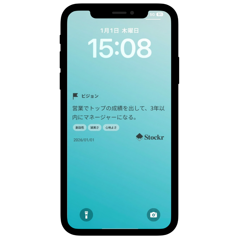 年始や誕生日、転職・異動・昇進などの節目に、「今年はこうありたい」「こんな自分を目指したい」とビジョンを設定。そのビジョンを画像として保存し、スマートフォンのロック画面などに設定することで、忙しい日常の中でも自然と目に入る環境をつくります。通知やタスクに追われる毎日の中で、ふと画面を見るたびに「自分は何を大切にしたかったか」を思い出せる、非通知型のリマインドとして活用ができます。