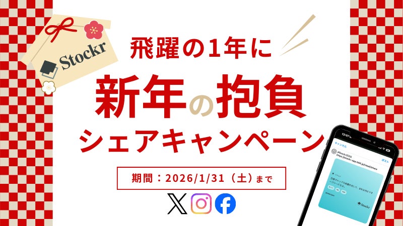 「Stockr」では、新しい一年のスタートにあわせ、ユーザーの成長を後押しする「新年の抱負シェアキャンペーン」を開催します。本キャンペーンでは、2026年に向けた目標や理想を「ビジョンシェア機能」でSNSに投稿した方を対象に、仲間と振り返り、成長を支え合うコミュニティ体験を提供します。