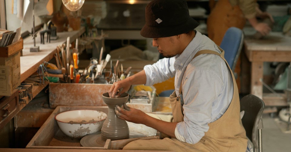 「料理やその素材を最高に惹き立てる器」として、ローカルガストロノミーを謳うリゾートや旅館などから引く手数多な、若手笠間焼作家。シグネチャーである器の色合いは、世界旅行で感銘を受けた大地の色から。