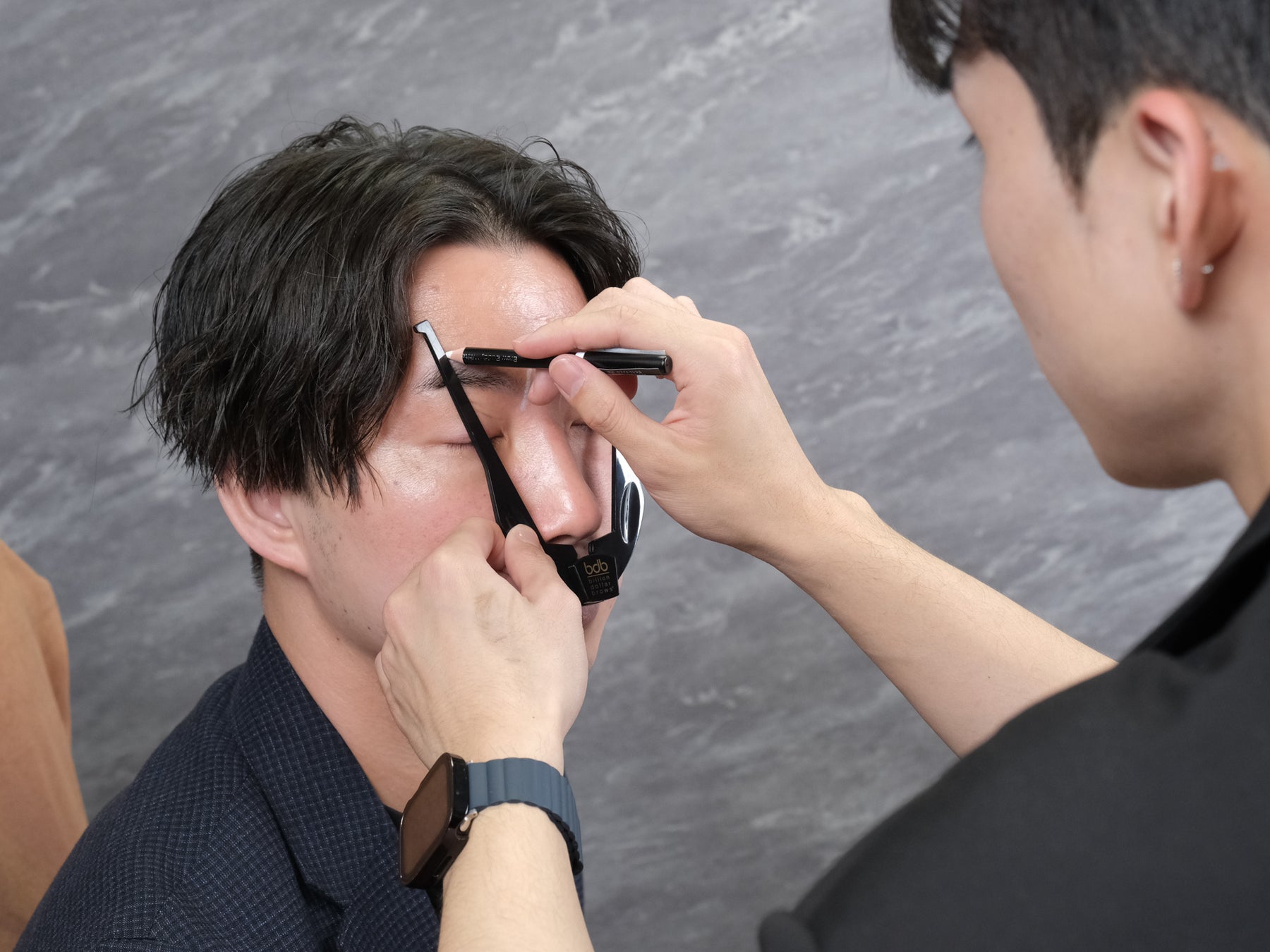 眉毛は一発勝負だからこそ、1本の調整が重要です。眉ラボではテープワックスを使用し、細かなデザインを実現、さらに毛抜きで眉山や濃さを調整することで、理想の眉毛に仕上げます。