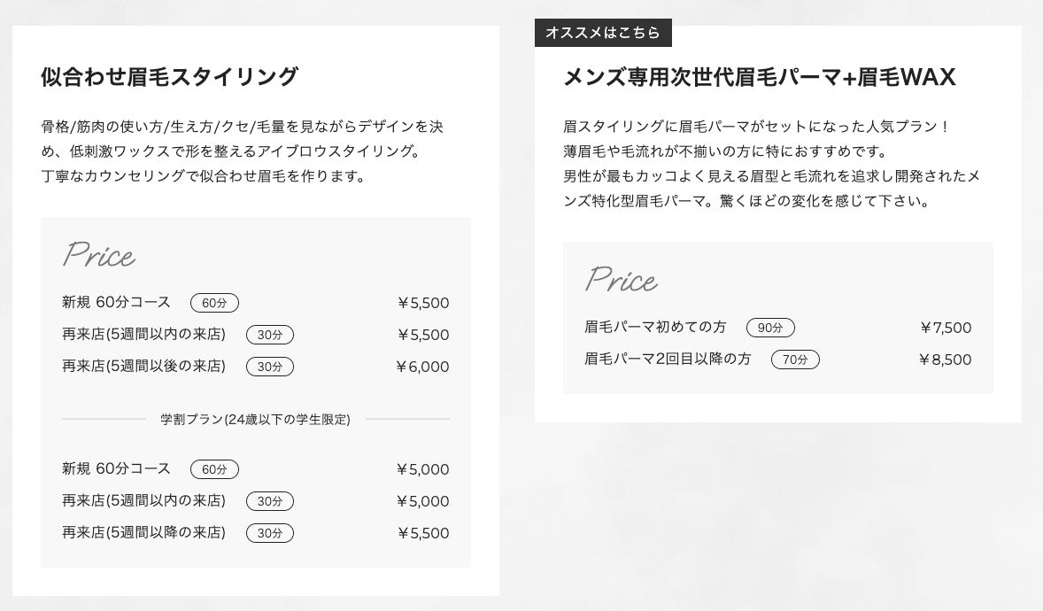 ■メンズ眉毛サロン 眉ラボでは、2種類の施術をご用意