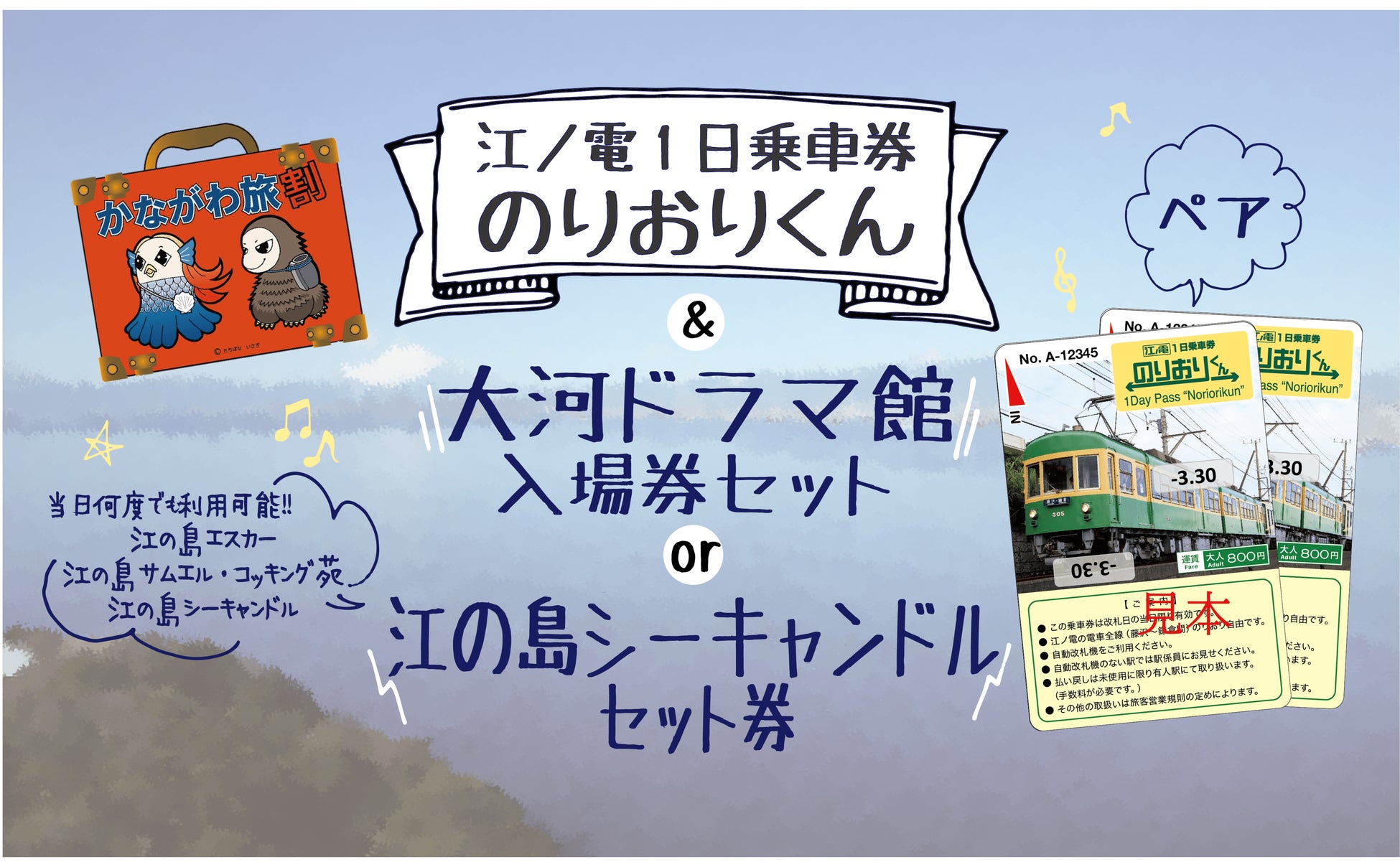 かながわ旅割 期間限定発売!江ノ電1日乗車券「のりおりくん」&「①大河ドラマ館入場券セット券(ペア券)」または「②江の島シーキャンドルセット券(ペア券)」の発売について