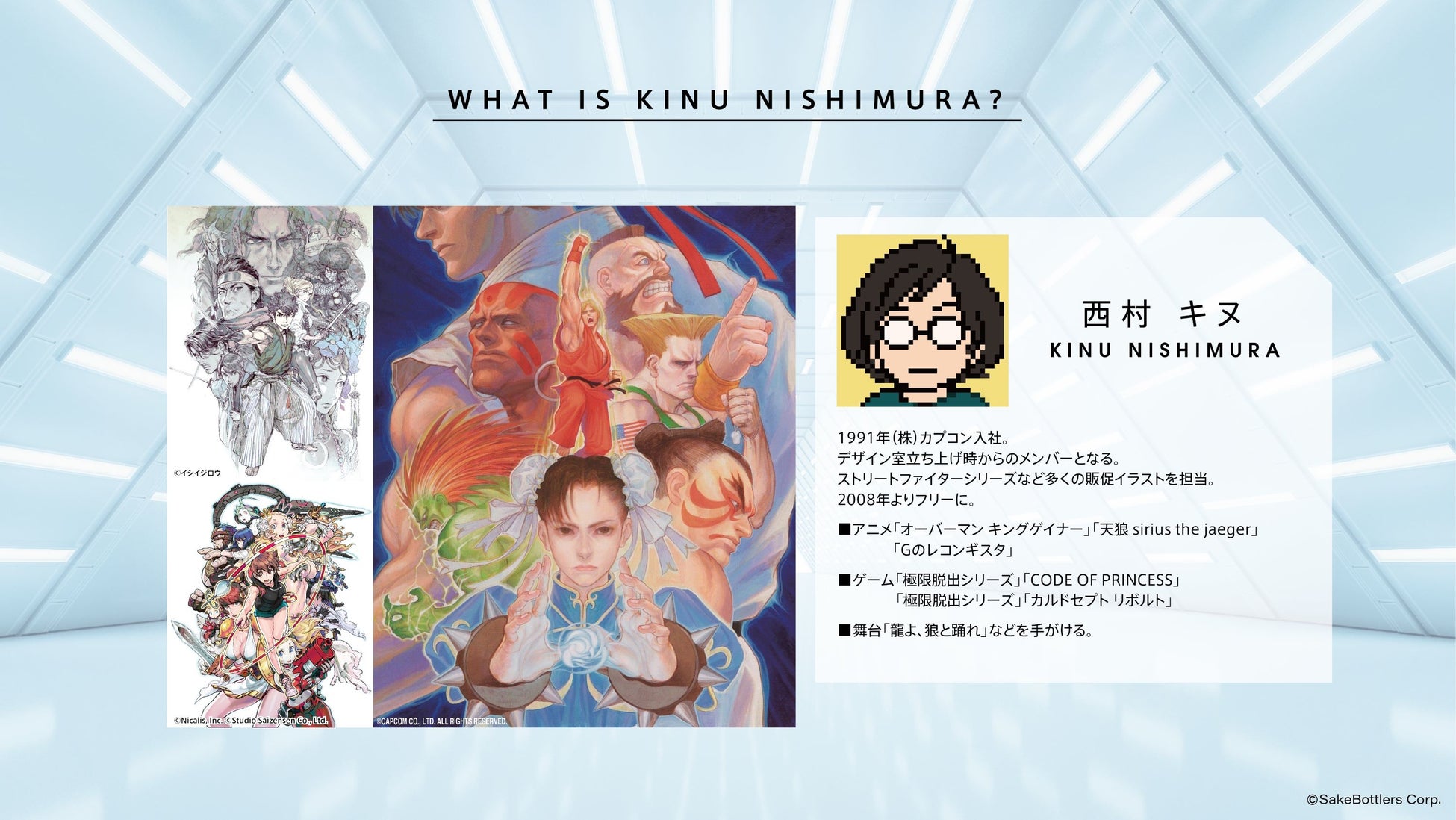 ゲーミング日本酒は、ラベルイラストに元カプコン、ストリートファイターシリーズイラストの『西村キヌ』、VTuberやAPEX公式ブックイラストの『Mika Pikazo』を起用し、2種類の日本酒缶を作成。日本酒は土田酒造(群馬)が醸造し「しゃがみ大パンチ」と表現したゲームシーンにマッチした味わいを提供している。