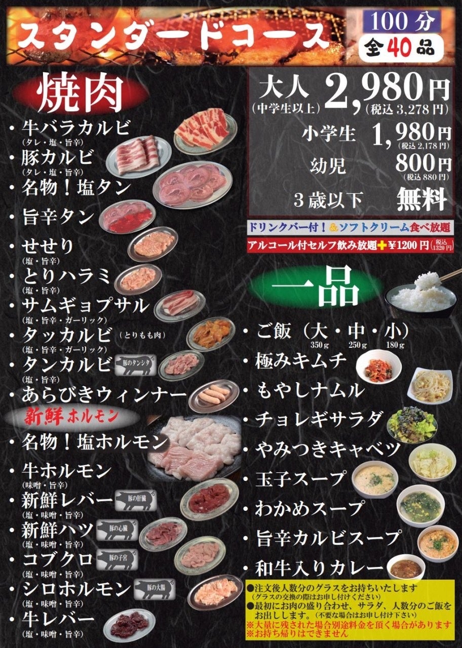 王道のカルビ、ハラミから新鮮ホルモンまで豊富なメニューを取り揃えております。サイドメニューも50種類以上ありファミリー層にも大人気のメニューばかりです。