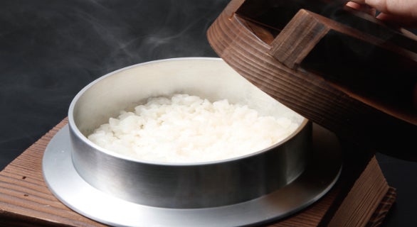 焼肉の最高の相棒!熊本県産のお米をひとつひとつ釜炊きしております。釜は厚みがあり、熱をじっくりと全体に均等に伝えるため、ご飯がむらなくふっくらと炊き上がります。米の持つ甘みや旨みが最大限に引き出されます。