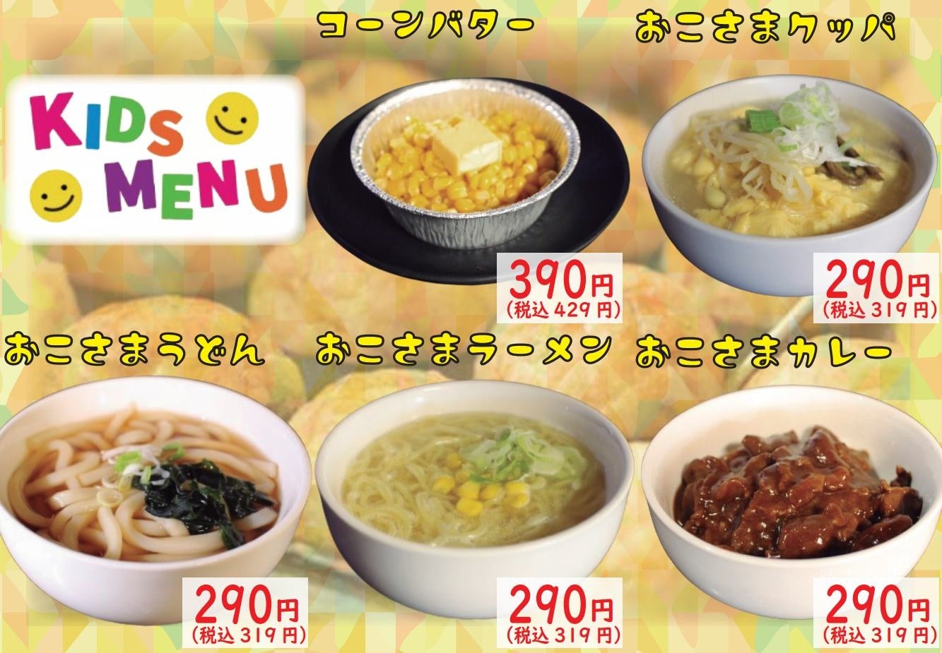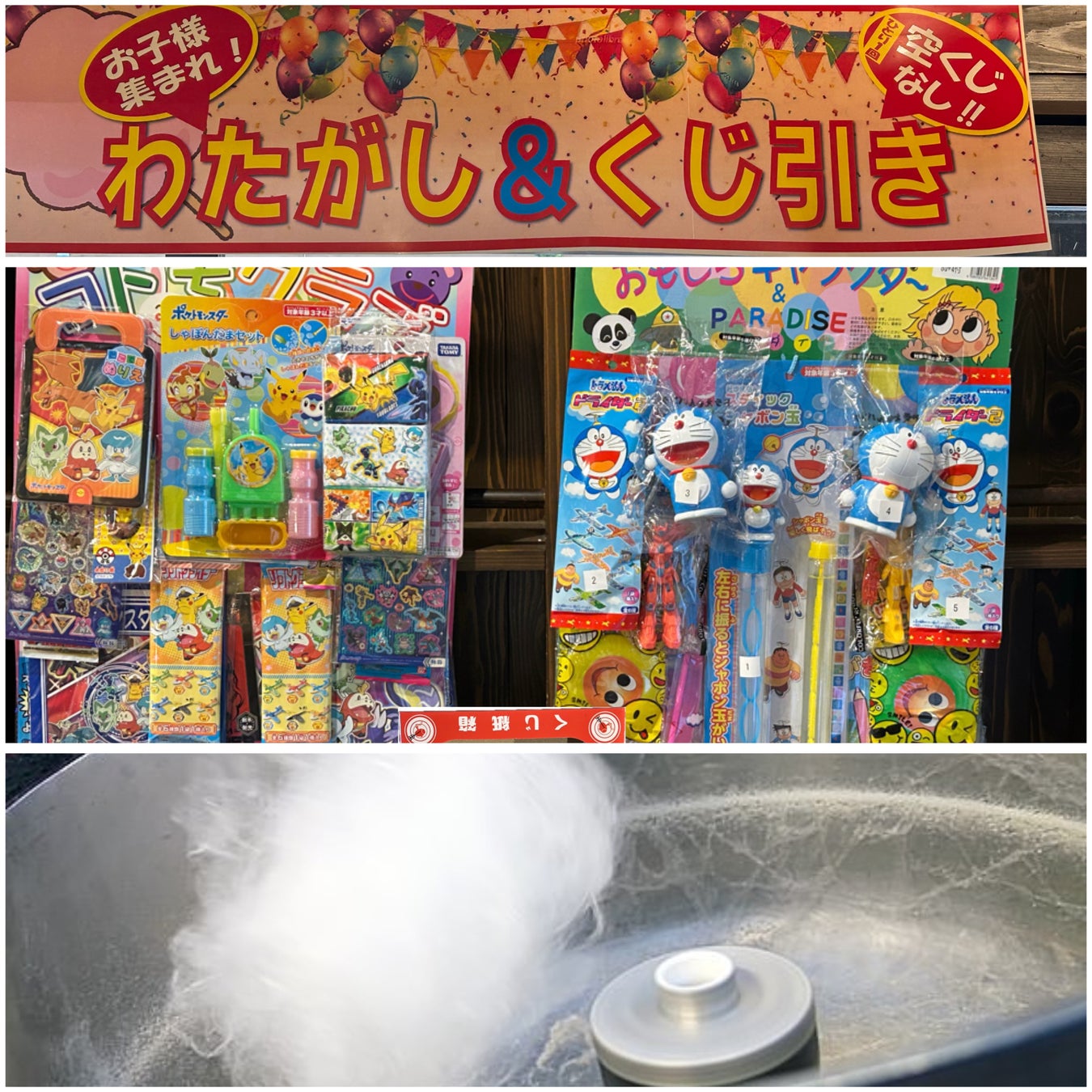 お子様連れにも嬉しいキッズメニューが新しく仲間入り!大人も注文できるので嬉しさ倍増です。綿菓子作り体験や空くじなしのくじ引き等お子様が喜んでもらえる企画を毎日実施中!