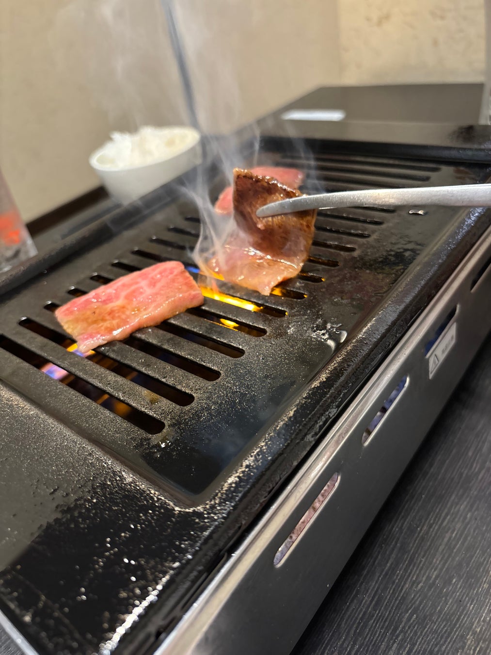 網のコンロに比べ鉄板のコンロ(ロースター)は火力が強く素早くお肉を焼く事ができます。また火力を調整しやすく、肉を均一に焼くことができ、お肉本来の旨みを味わうことができます。