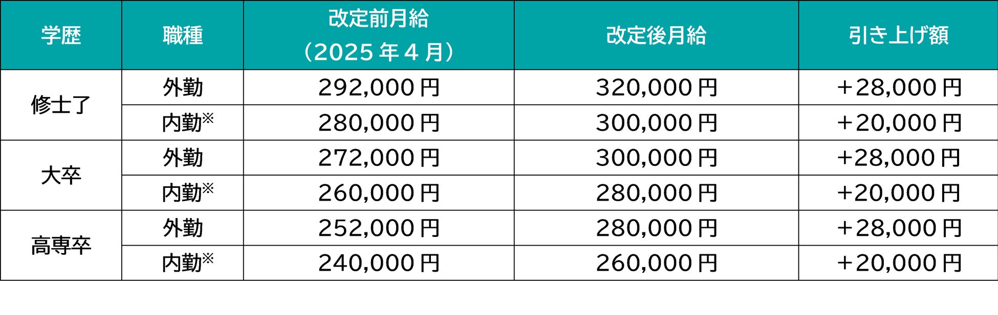 上記に加えて、全社員を対象としたベースアップを4年連続で実施しており、処遇面の充実を図っております。