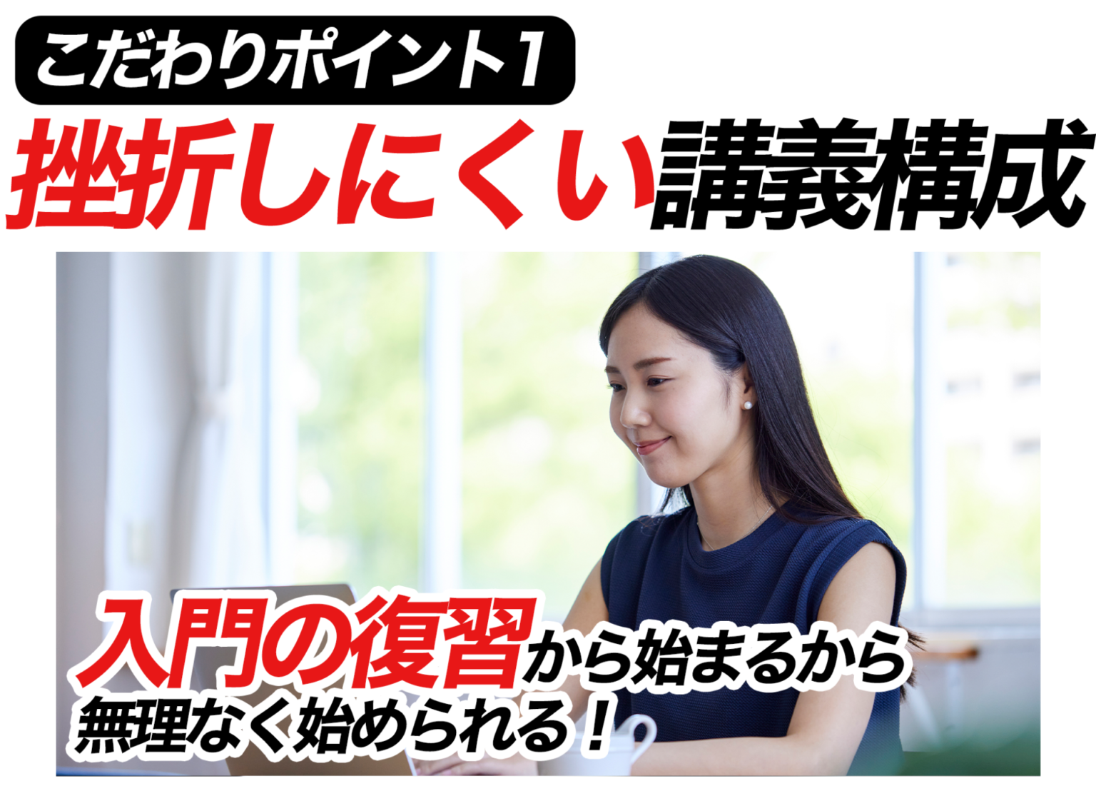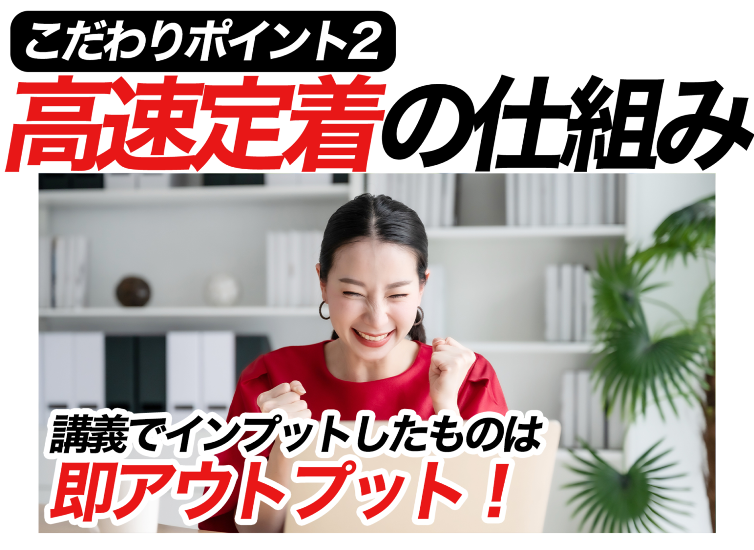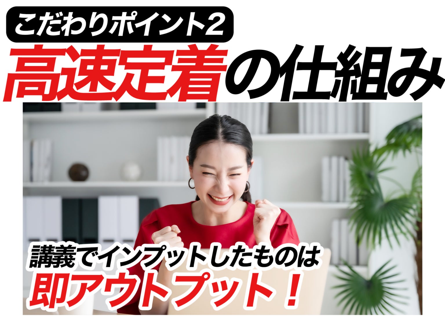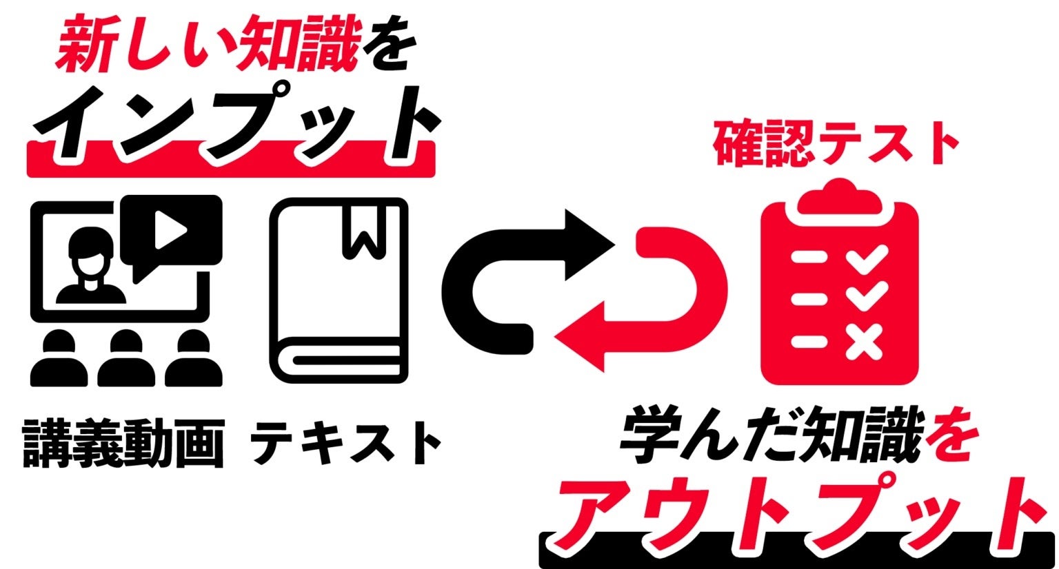 まずは、講義動画と特典テキストを活かしてインプットをしていただき、確認問題を通じて、即時アウトプットしていただきます。