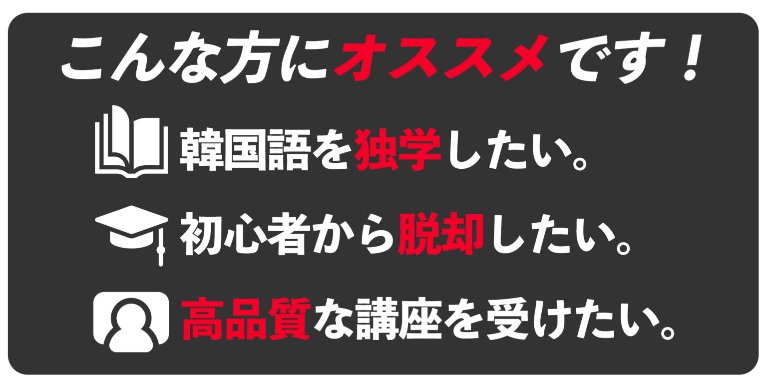 まだハングルが全く読めない方のためにも、完全無料の動画講座を開講しております。まずは、気軽に入門韓国語講座をご受講ください。