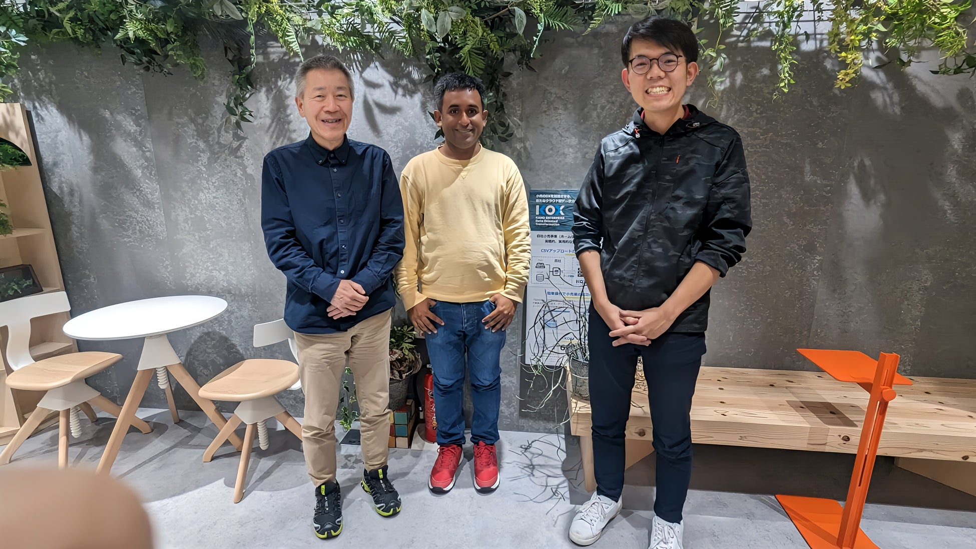 (写真:カホエンタープライズ福岡本社にて。COO光嶋様、採用されたJOSEさん、セールス&マーケティング部湯野様と)