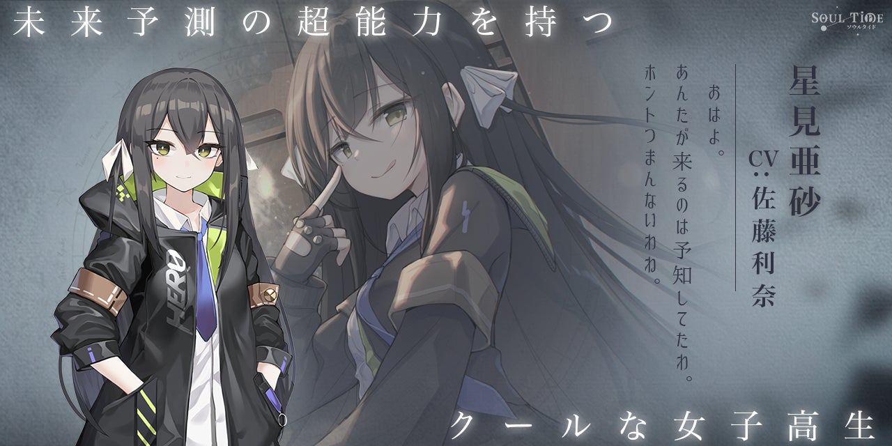 星見亜砂は未来が読める能力を活かして迷宮探索において活躍しますが、時には人形使いであるあなたをからかったりすることも。ですが本当は仲間思いで、周りの人を気にかけています。彼女と信頼関係を築くのは困難かもしれませんが、魂が通じ合った時は、心強い味方になるでしょう。