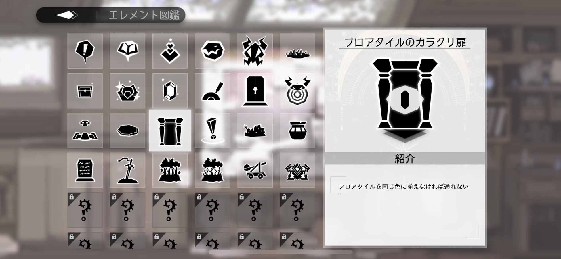 迷宮でキャラを操作していると、このような「エレメント」を見ることがあります。このエレメントは100種類以上のバリエーションがあり、これを踏まえて謎解きをし、突破しないと迷宮の奥へ進めないこともあるでしょう。
