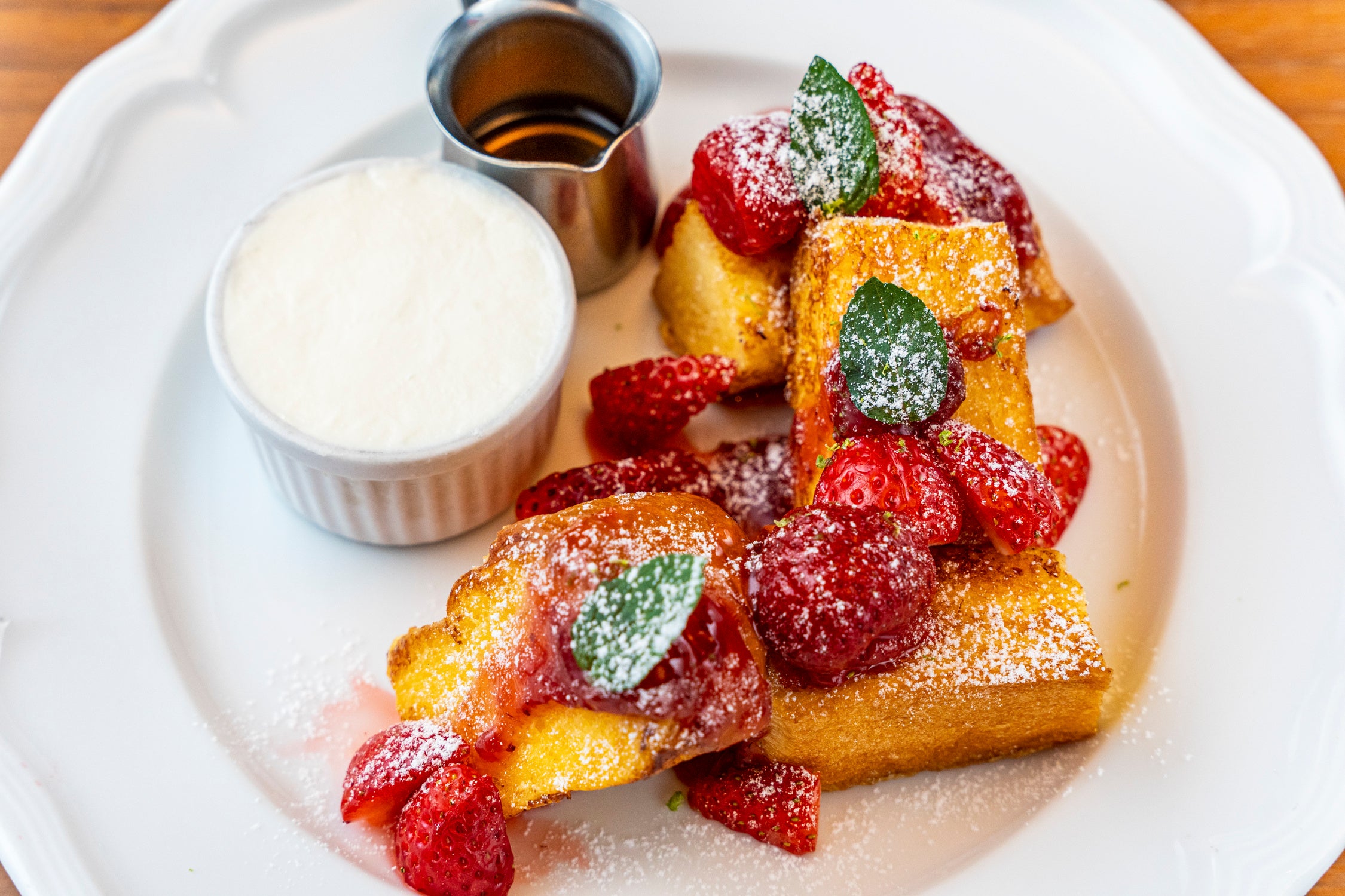 一晩じっくり漬け込んで味を染み込ませたフレンチトーストは、中はふわとろに焼き上げた絶妙なバランスに。