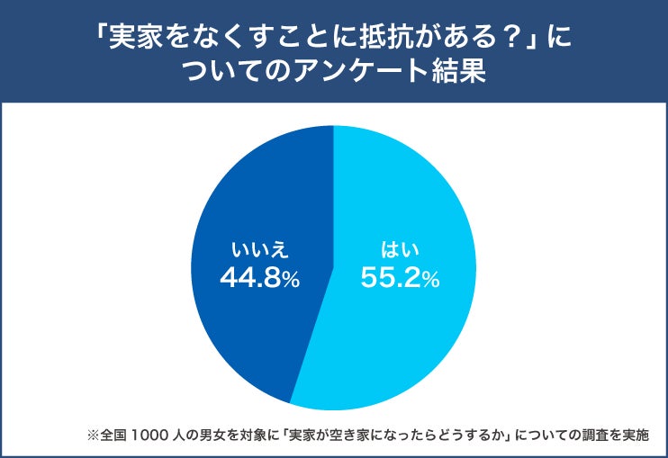 53.2%の人が実家を「相続したくない」と答えつつも、55.2%の人は実家をなくすことに「抵抗がある」と回答しています。