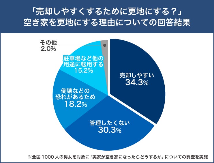 建物を取り壊して更地にする理由としては「売却しやすい」からが1番多く、更地にした後に売却することを視野に入れているとわかります。