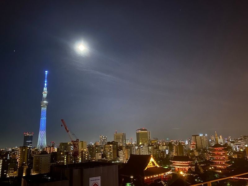 通常ホテル宿泊客のみ利用可能な地上14階のルーフトップテラスですが、当日は一般のお客様も参加可能です。スカイツリー・浅草寺・花やしきなど浅草の夜景と満月を眺めながらお抹茶とお団子を楽しむTHE KANZASHI TOKYO ASAKUSAならではのお月見をぜひご体験ください。