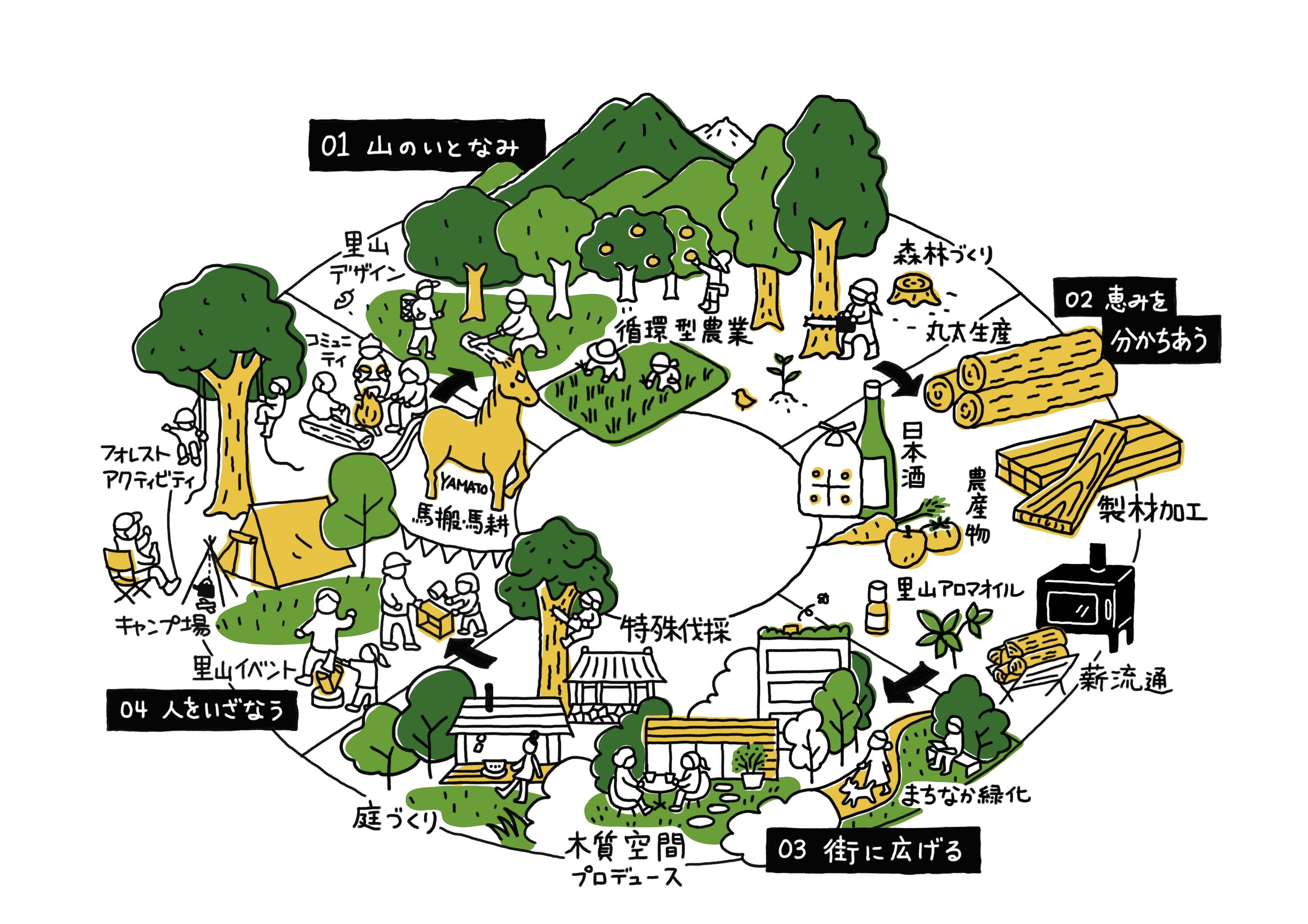 私たちはこの地域特性に着目し、森の価値を再編集する取り組み「めぐみ、めぐらすプロジェクト」を推進してきました。