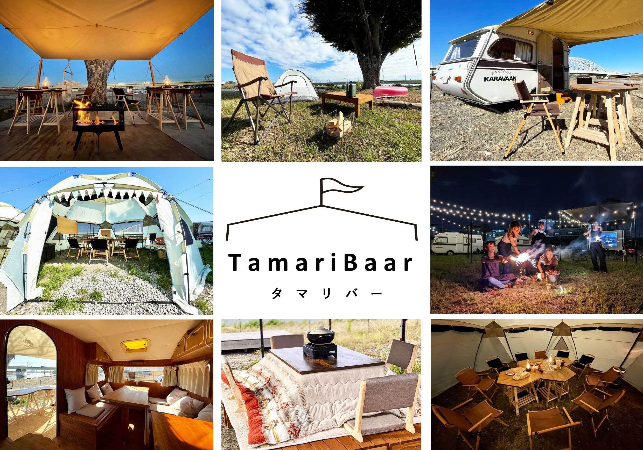 「TamariBaar(タマリバー)」は、JR/小田急線の登戸駅より徒歩3分の河川敷に位置する多目的アウトドアスペースとして、2022年3月に運営を開始。都心から良アクセスということもあり、企業や団体のミーティング・研修といったビジネス利用から、パーティー・展示会等のイベント、仲間や家族とのプライベートBBQまで幅広い形でご活用いただいています。