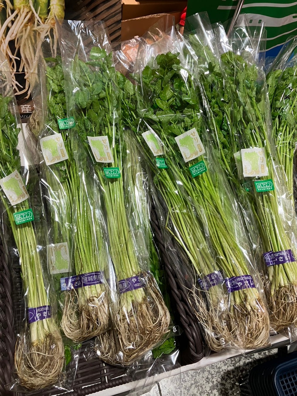 新鮮な根まで食べられる宮城県名取市産のせりです。会場では仙台の冬の風物詩である「せり鍋」がお手軽にできるよう厳選した食材をセットにした「いぎなりせり鍋セット」も併せて販売します。せり鍋専用スープや仙台油麩、オリジナル笹かまぼこの具材をセットにし、すぐにせり鍋をお楽しみいただけます。