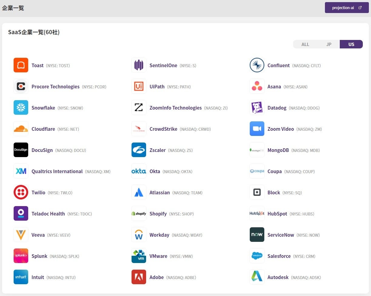 projection-ai株式会社(本社:東京都港区、代表取締役:浅田慎二)は、この度、米国主要SaaS企業33社を追加し、データベースの大幅拡張を行いましたので、お知らせ致します。