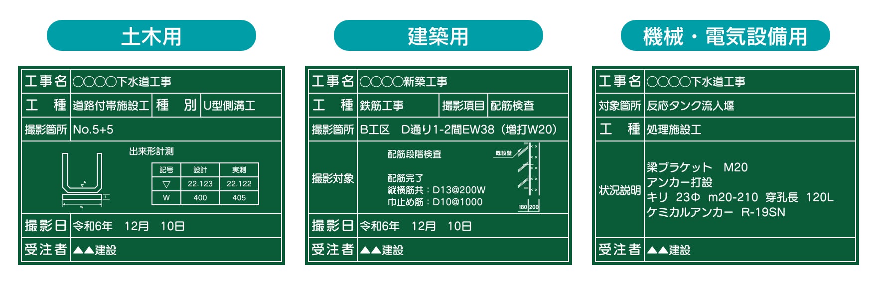 電子小黒板のテンプレート化で工事写真管理に必要な情報を統一