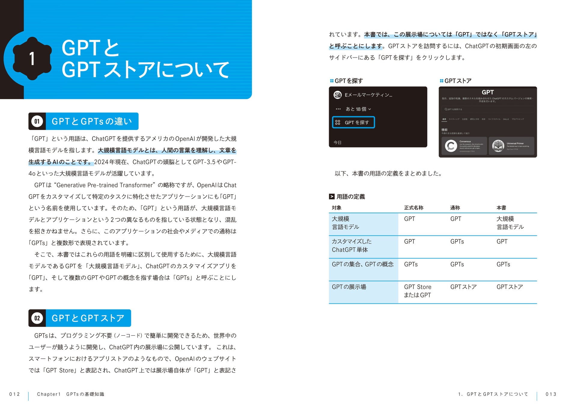 GPTsとは、ChatGPTをカスタマイズしてAIアプリを作り出すことができる機能のことで、特定の目的や用途に特化したオリジナルのAIアシスタントを使うことで、仕事の効率化や時短化を促すことができます。本書は「そもそもChatGPTそのものも使ったことがない」という人のために、基礎中の基礎からGPTsのつくりかたを教えます。