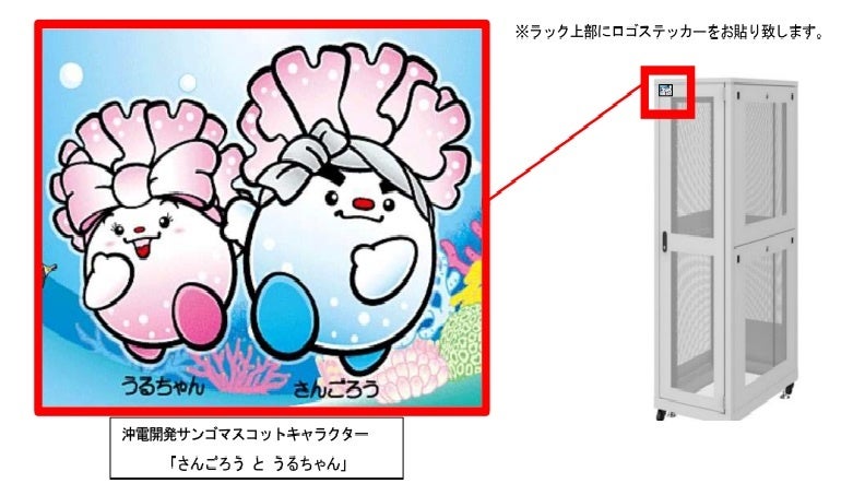 また、ご契約ラックには環境貢献していただいた証として、沖電開発がサンゴ植付け等の環境事業で展開しているマスコットキャラクター「さんごろう と うるちゃん」のロゴステッカーをお貼りいたします。