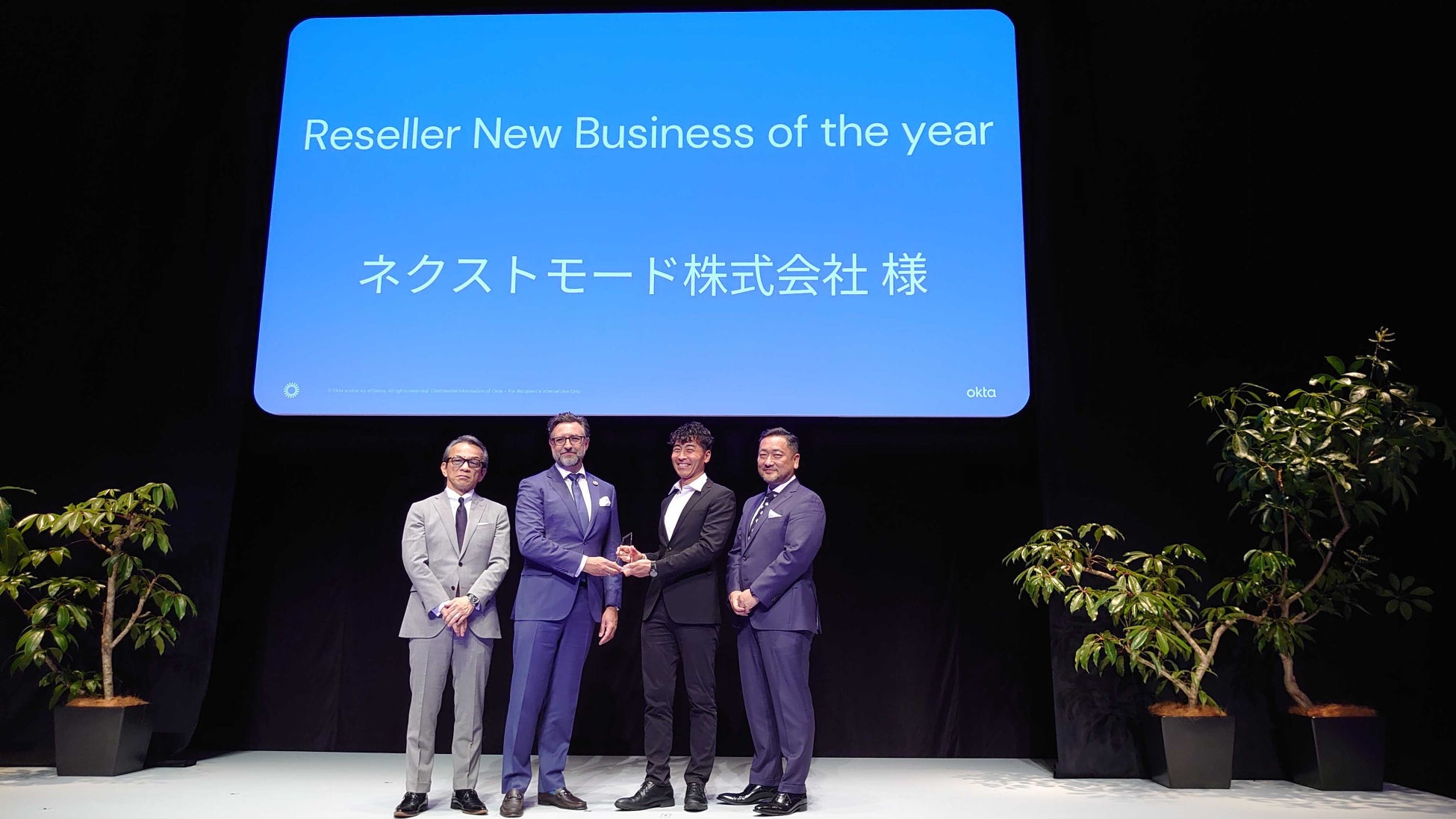 ネクストモード様は2020年の会社設立以来、Okta WICを社内で全社的に活用いただき、社内利用の中で蓄積してきたノウハウをもとに、Oktaの新規お客さまを開拓されてきました。昨年度に引き続き、今年度も(2022年2月1日から2023年1月31日までの期間)、日本において最も多くの新規顧客への販売実績を収められたのは、こうした社内での経験があってこそだと確信しています。またネクストモード様はOkta WICの活用方法についてブログ(https://info.nextmode.co.jp/blog/tag/okta)を多数執筆することで技術ノウハウを惜しみなく公開し、ITの民主化に貢献されています。販売実績とともに、技術で世の中に貢献したいという姿勢を讃え、 『Reseller New Business of the Year』を贈らせていただきました。今後も引き続きOktaの素晴らしさをお客さまに届けていただければ幸いです。