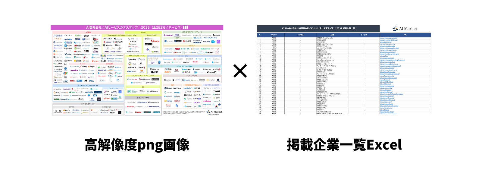 本カオスマップの高解像度データ及び、本カオスマップに記載の「掲載企業一覧Excel」は下記よりダウンロードすることが可能です。