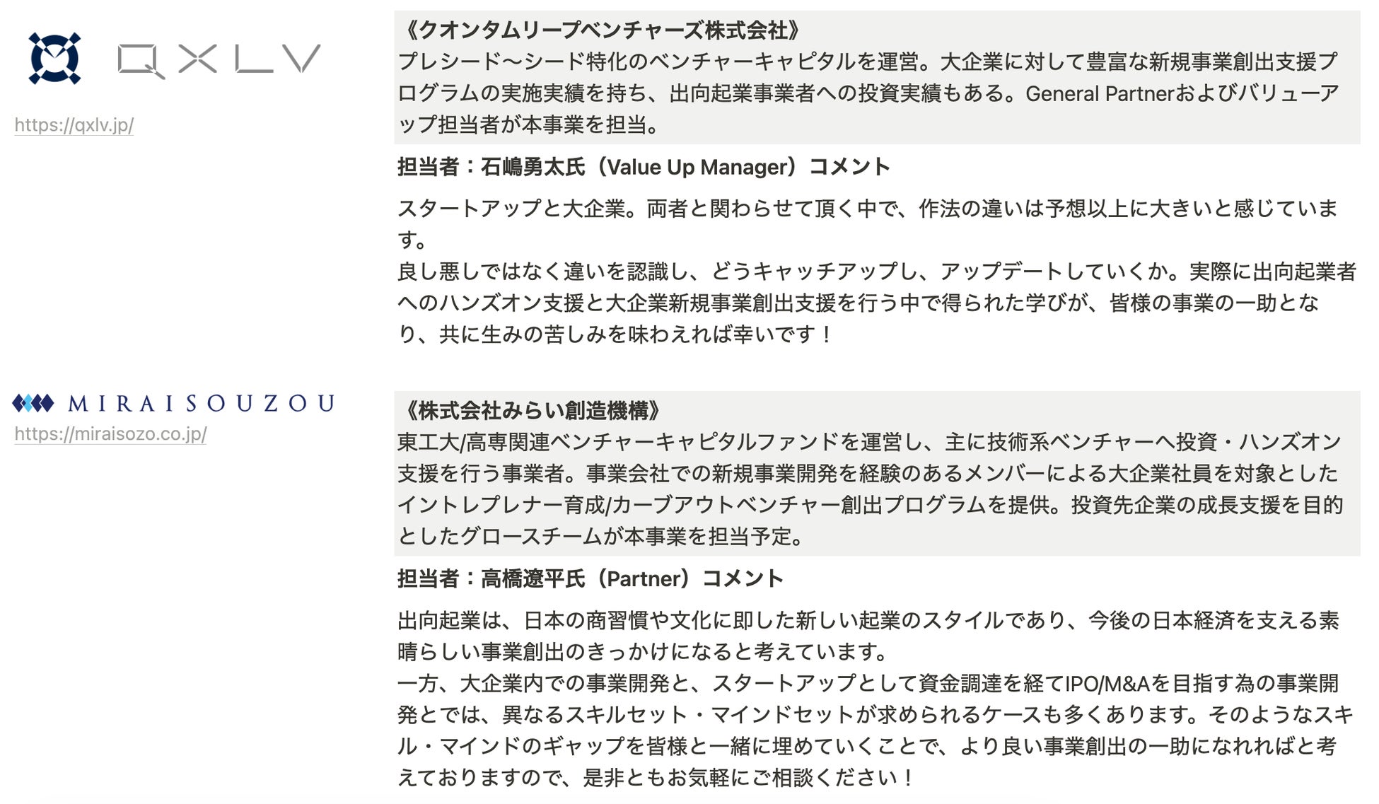 本事業の実施にあたり、ハンズオン支援機能を強化すべく、事業化支援の専門家であるクオンタムリープベンチャーズ株式会社・株式会社みらい創造機構の2社が事務局に参画いたします。
