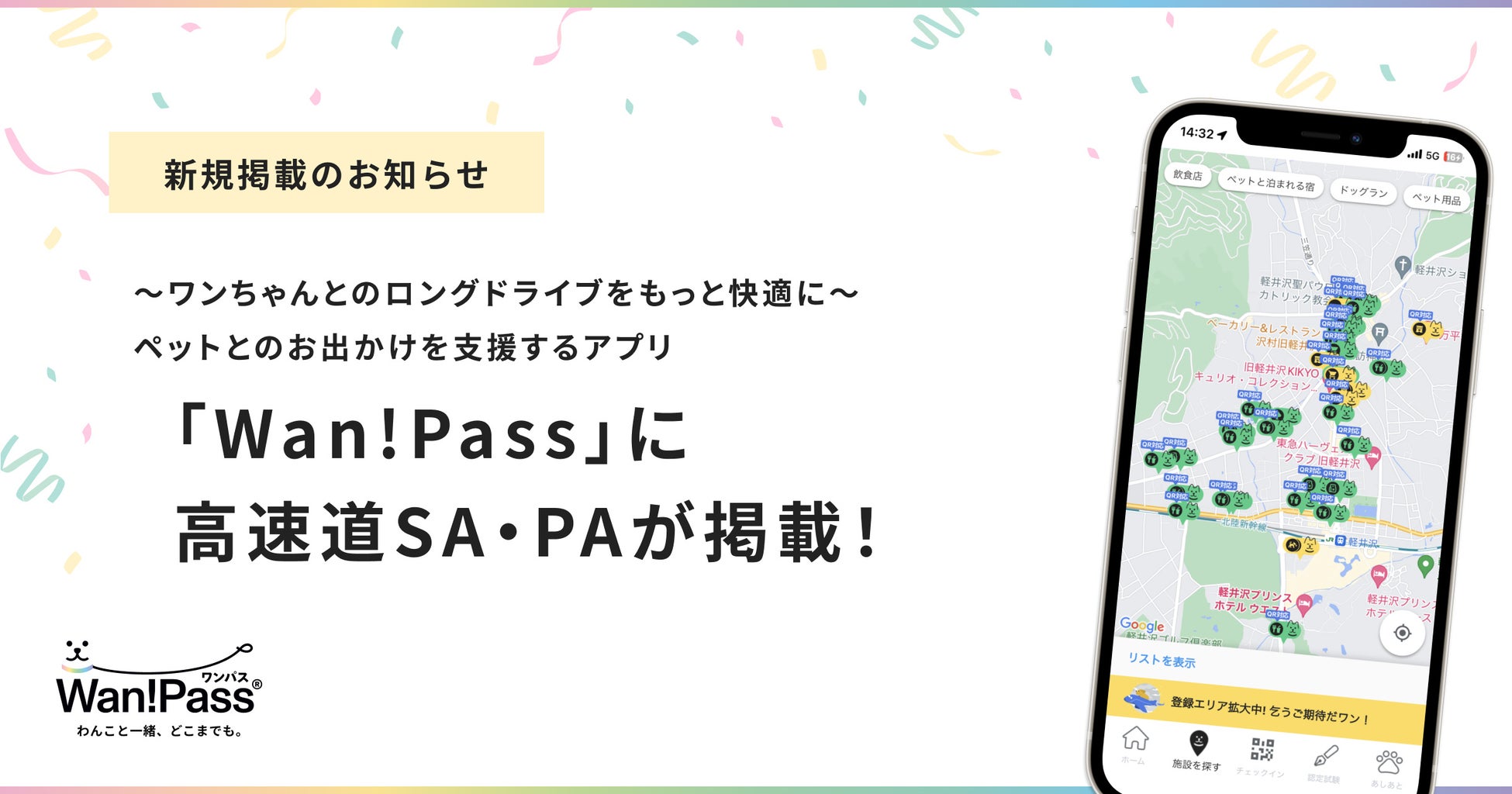 ペットとのお出かけを支援する「Wan!Pass(ワンパス)」に、高速道路SA、PAが掲載されました