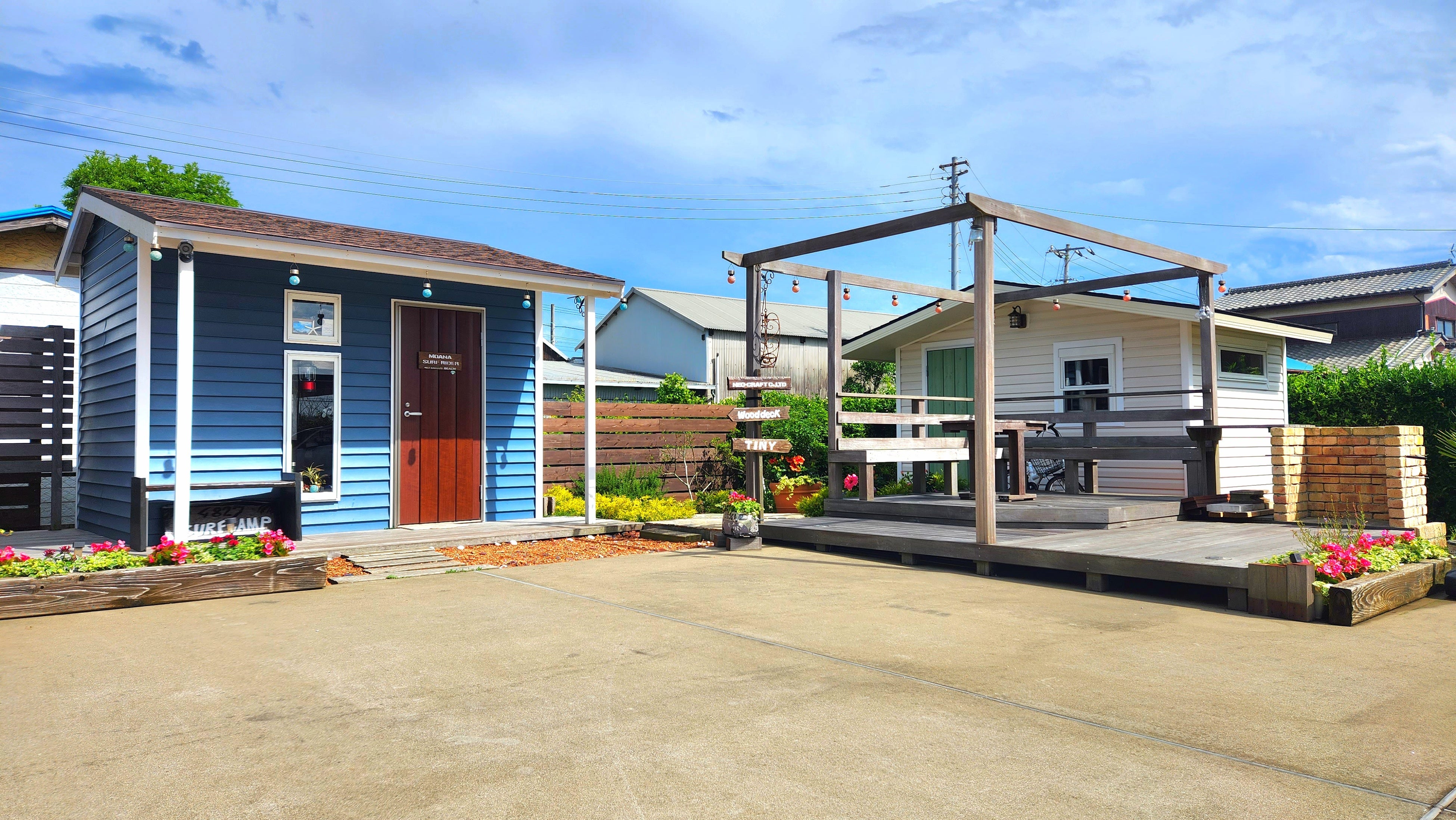 九十九里海沿いSURF CAMP OAMIには小屋キットTINYとウッドデッキを展示中。塩害エリアだから解る、その耐久性能を体感してみませんか?