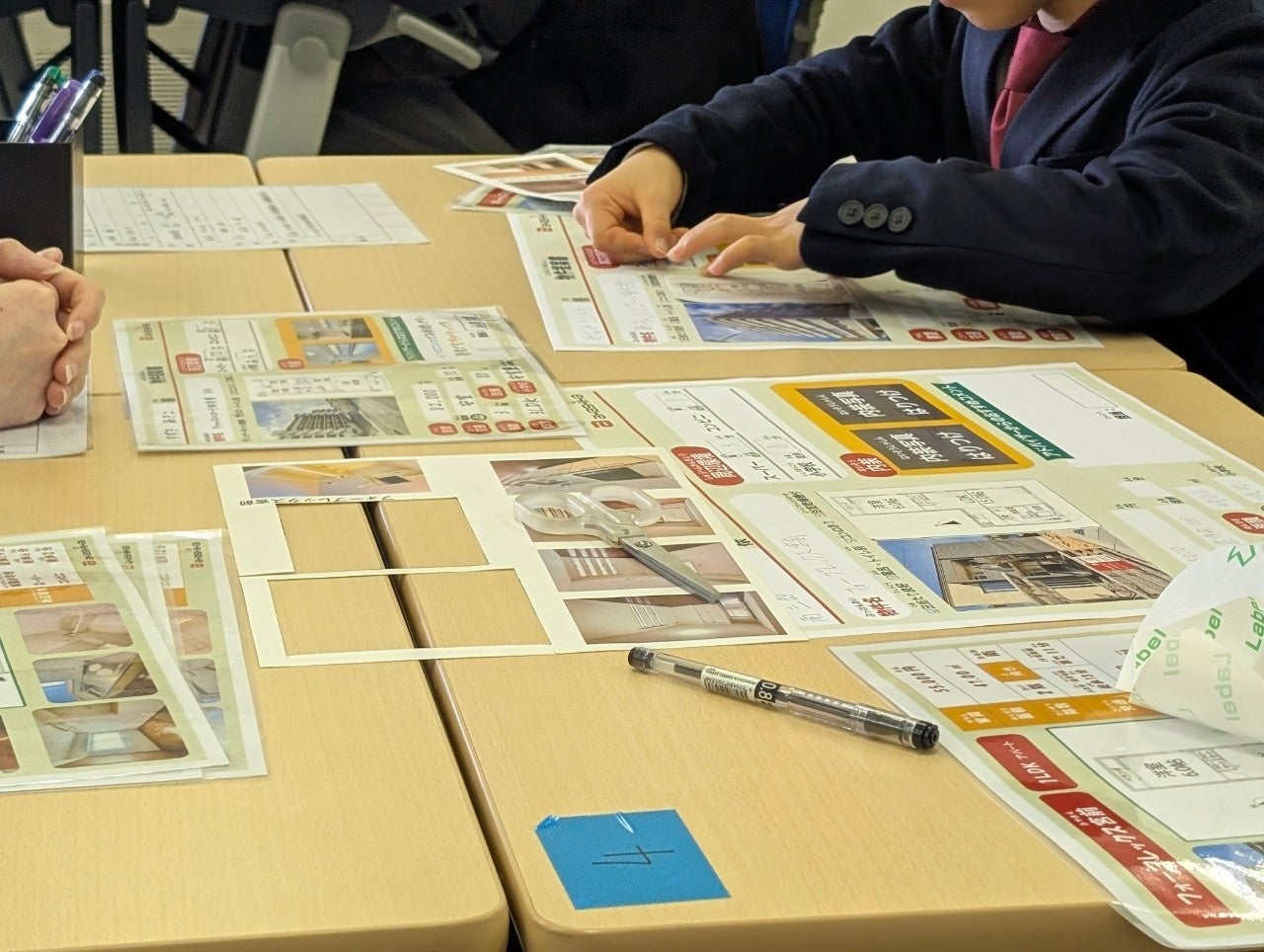 「物件提案書の作成」では、どんな物件がお客様の要望にあっているのか、お客様の立場になって賃貸物件を探しました。お客様の希望条件が書かれたアンケートと、いくつもある物件資料に目が何度も行ったり来たりさせながら、どのお子さまも真剣に取り組んでくれました。