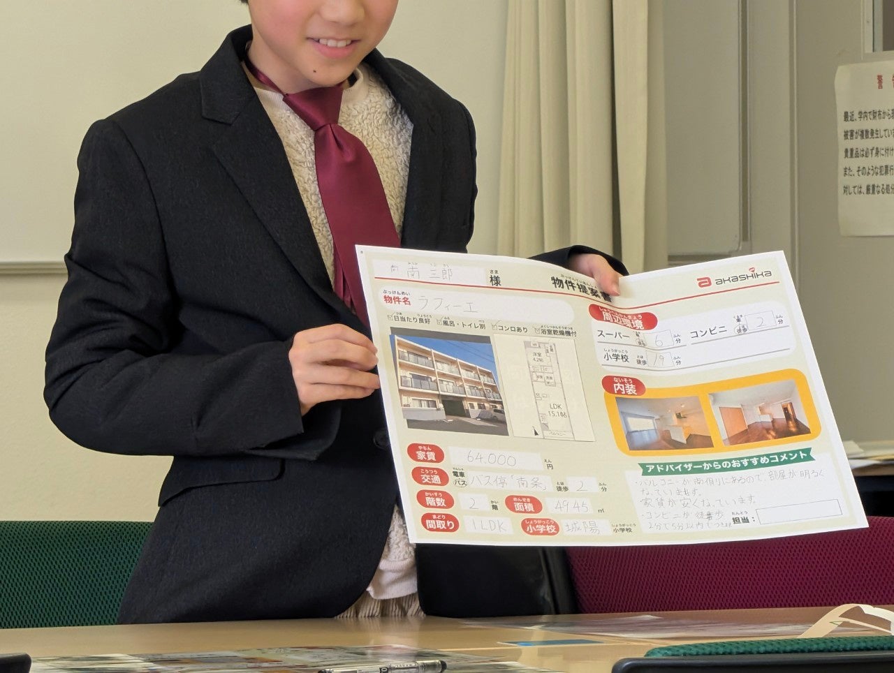 賃貸物件の選定から提案を体験し、仕事の楽しさや大変さを学ぶ貴重な機会に