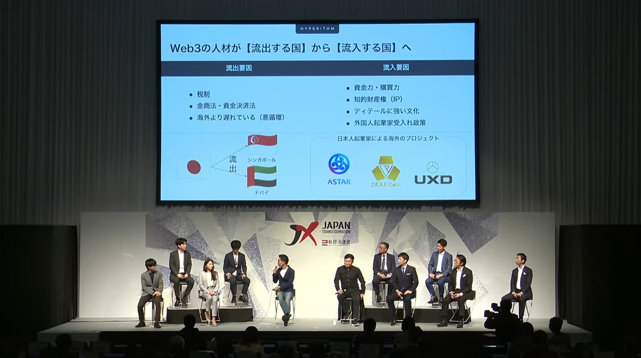 「日本からシンガポールやドバイへ移住している起業家や移住を検討している起業家が多い現状は非常に勿体無い」とし、新経済連盟の理事の方々に対して、Web3の人材が【流出する国】から【流入する国】となるよう、「税制改革に対するより強い働きかけ」と「Web3へのさらなる資金投下」を提言しました。